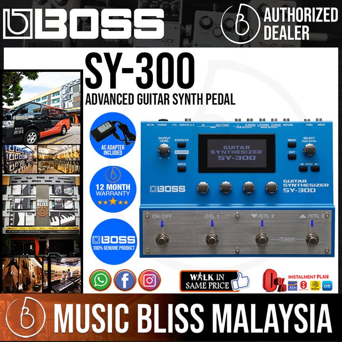 Take your guitar into the world of sound creation with the SY-300 Guitar Synthesizer from BOSS. No special pickup required. Just plug your guitars right into the 1/4-inch jack and play! Brand new BOSS technology gets you fat, analog-style polyphonic synth sounds with zero latency, seamlessly extending the natural expressiveness and familiar feel of your favorite guitar. You can also shape your actual guitar tone with the onboard filters, amps, and LFOs. From soundscapes, to leads, to textural pads, and everything in between, the SY-300 lets you create sounds never heard before.