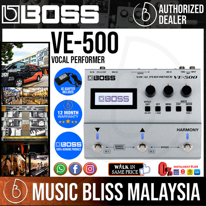 Guitarists — how would you like to robo-tune or reverberate your vocals with the press of a switch? Create lush three-part harmonies and dynamic loops as inspiration strikes? It's all possible with the BOSS VE-500 Vocal Performer from Music Bliss. This vocal power plant is the perfect pedalmate to your existing pedalboard. An onboard instrument input and through output allows the VE-500 to generate smooth, natural, intelligent vocal harmonies just by listening to your chord voicings. No theory or programming is required. A clean XLR mic preamp with adjustable gain and onboard +48V phantom power provide the all front end you need for favorite stage condenser or dynamic mic. Meanwhile, the VE-500's 99 programmable user presets keep whole sets' worth of 32-bit floating point effects — distortion, delay, filtering, reverb, and more — ready at a moment's notice. Stereo XLR outputs deliver your best performances directly into a PA system or recording medium for safekeeping.