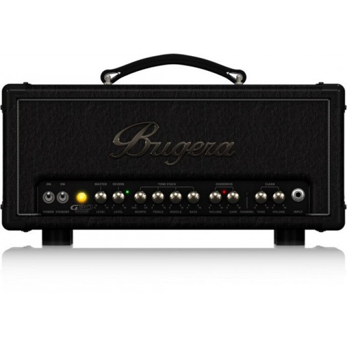 The Bugera G20 Infinium Class A electric guitar tube amplifier head is a wonderful solution for the guitarist who needs a reliable amp with a wide palette of sound at a screaming price. Bugera's Infinium technology not only greatly extends the life of your tubes, but it also allows for mixing and matching. The Morph knob dials in American and British EQ curves, and the G20 is loaded with additions like an effects loop, speaker-emulated out, and more. The Bugera G20 Infinium is a great companion for the guitarist who needs a lot of tones under the hood.