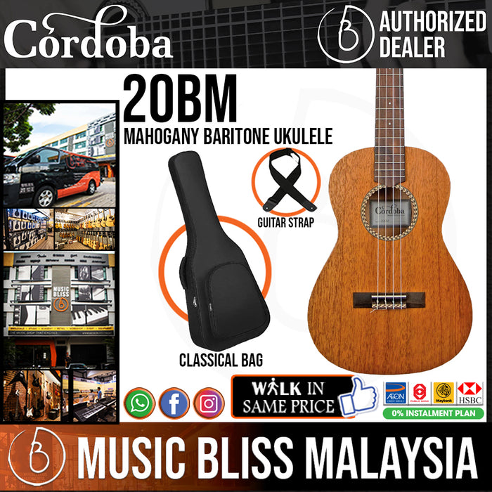 The 20 series ukuleles feature a solid mahogany top and mahogany back and sides. The natural dual-herringbone wood pattern rosette and satin finish make this a truly beautiful instrument for the both beginners and ukulele enthusiasts alike. Available in soprano (20SM), concert (20CM) tenor (20TM) and baritone (20BM) sizes.