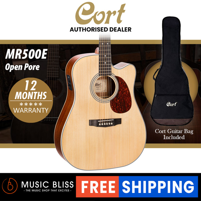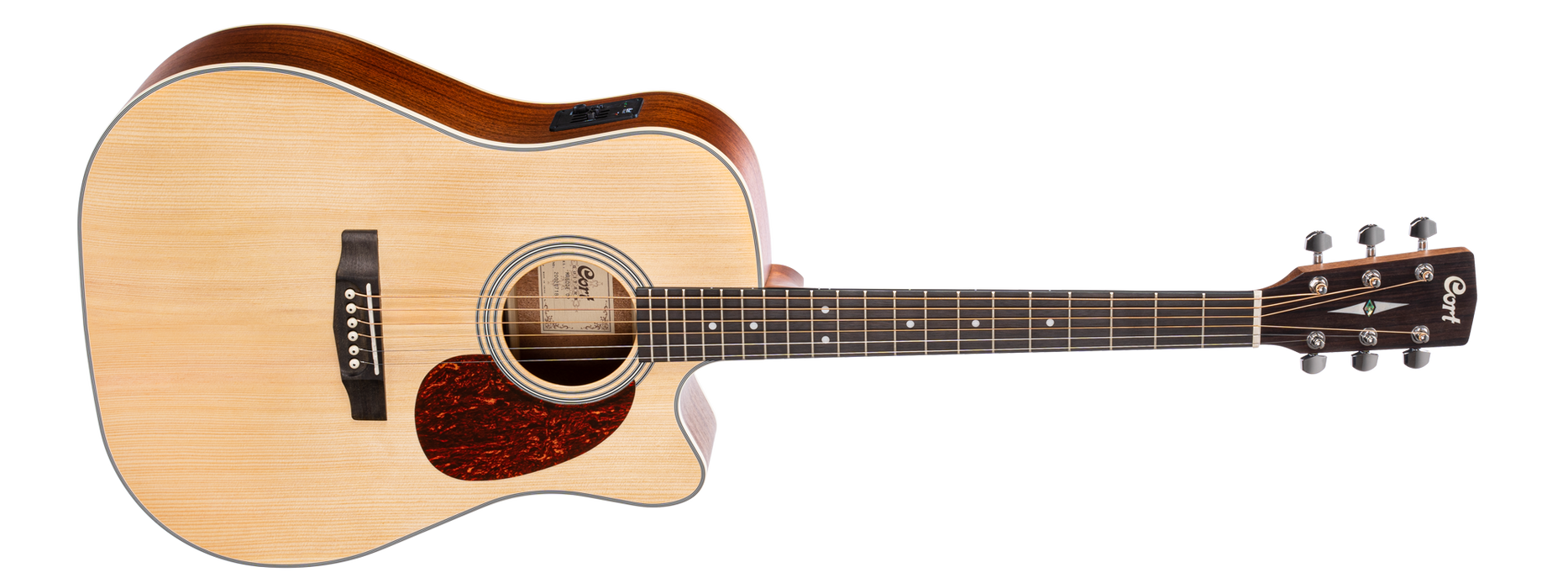 The MR Series represents Cort’s mission to provide the highest quality traditional instruments with superb workmanship and modern features at an unbeatable value. The classic dreadnaught body has a Venetian cutaway for easy high fret access and is equipped with Fishman electronics to deliver the MR’s natural acoustic sound to an amplification system for both live and recording applications.