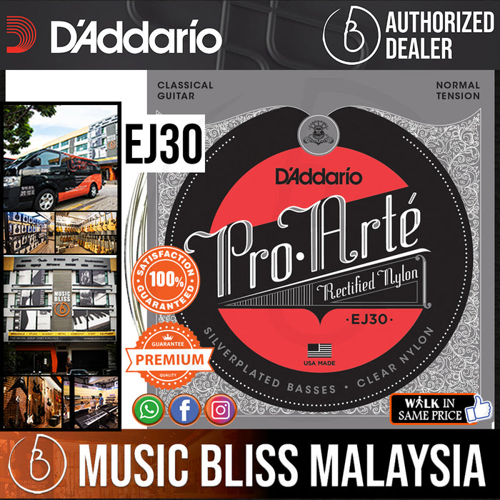 D'addario EJ30 are a normal tension classical guitar string set containing silver on nylon wound strings and rectified clear nylon treble strings for highly accurate intonation.