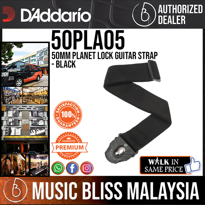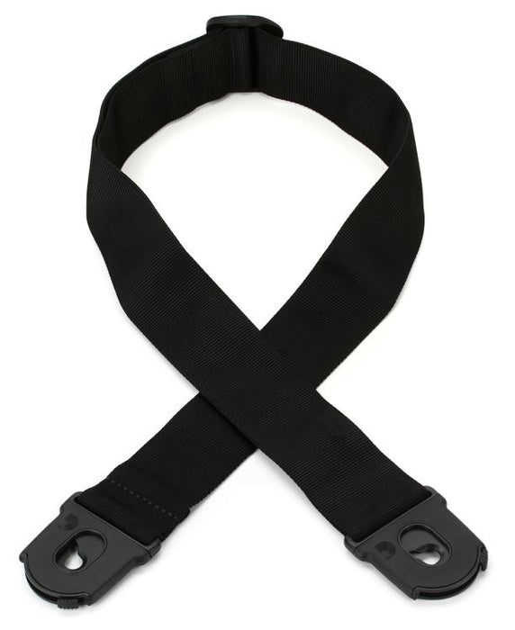 The Planet Lock Black is a member of Planet Waves's Planet Lock series. This guitar strap collection features built-in locks to keep your guitar securely in place, so it won't slip out of the strap and fall as you play. The locks fit onto standard strap pins and are built into the strap, instead of the guitar, so you can quickly swap your Planet Lock strap onto other guitars. Play securely — and in style — with the Planet Lock Black!