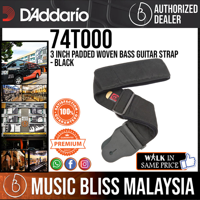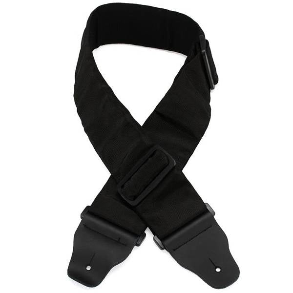 This Planet Waves Leather Bass Guitar Strap is black, has comfortable padding, and can be adjusted from 43" to 58" long. It's 3" wide.