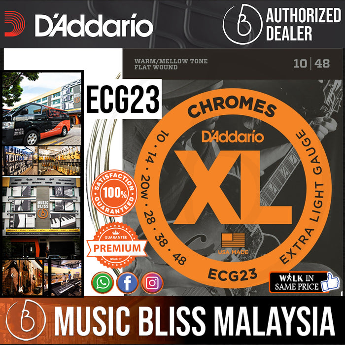 D'Addario's Chromes Flatwound Electric Guitar strings sport stainless steel under-windings on hex cores that build the foundations for their delicate outer ribbon winding. Each string goes through three polishing steps, resulting in a string that feels smooth to the touch. Take it from the Music Bliss jazz guitar players - D'Addario ECG23 Chromes flatwound guitar strings provide the smooth, mellow tone and flatwound vibe you're looking for.