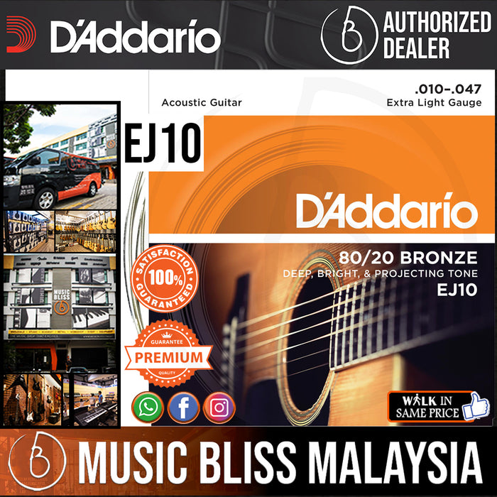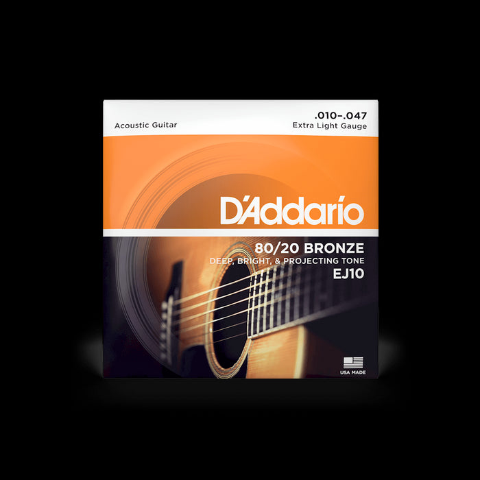 D'Addario EJ10 Extra Light 80/20 Bronze Acoustic Strings - .010-.047 (EJ10)