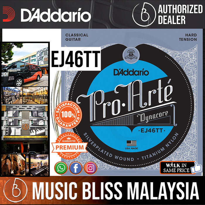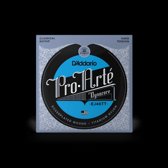 This set of EJ46TT Hard Tension Pro-Arte Dynacore Classical Guitar Strings from D'Addario combines titanium trebles with Dynacore basses to produce a blend of bold, modern tone with accurate intonation, ideal for contemporary classical players.