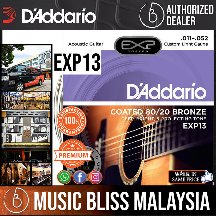 D'Addario EXP13 Custom Light Coated 80/20 Bronze Acoustic Strings - .011-.052