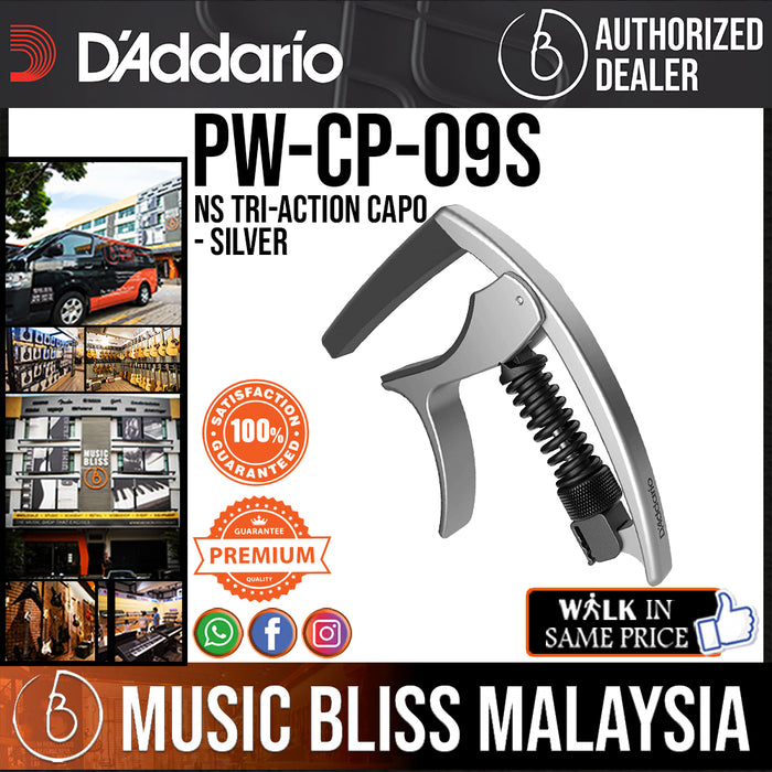 The Planet Waves NS Tri-Action Capo gives you buzz-free, in-tune performance on any fret of your 6-string guitar. This lightweight aluminum Ned Steinberger design features Tri-Action geometry that's easy on your hands and provides quick and effortless operation. With micrometer tension adjustment and direct horizontal pressure, the Tri-Action effectively eliminates lateral string pull (and the need for frequent re-tunings), giving you even tension across all your strings - regardless of your guitar's neck profile. It even has an integrated pick holder. Put a Planet Waves NS Tri-Action Capo in your gig bag today!