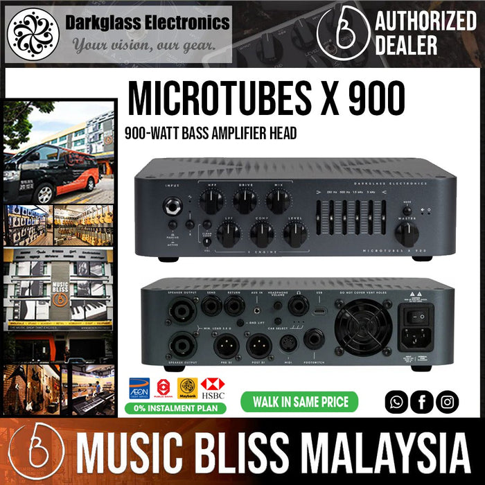 Merging Darkglass’ X-series distortion with the high-power Microtubes 900 platform, the Darkglass Microtubes X 900 is a cutting-edge powerhouse of low-end aggression. This bass amplifier head’s mammoth 900 watts of Class D power and ultra-versatile 6-band graphic EQ allow you to tweak, twist, and shape your bass tone from pristine, warm thump to raspy slap and pop tones. However, the real magic happens when you engage the Microtubes X 900’s “X Engine” — this raw, gritty distortion circuit based on Darkglass X-series pedals boasts its own LPF/HPF filters and compressor (also available on the clean channel). You also get MIDI channel switching, stunningly realistic IR cabinet sims, a programmable mute, headphone outputs, auxiliary inputs, and much more. In summary, the Microtubes X 900’s combination of sweeping sonic flexibility, comprehensive stage/studio/practice room features, and signature Darkglass X-series distortion represents a bold new era in Darkglass’ long-standing tenure of low-end dominance.
