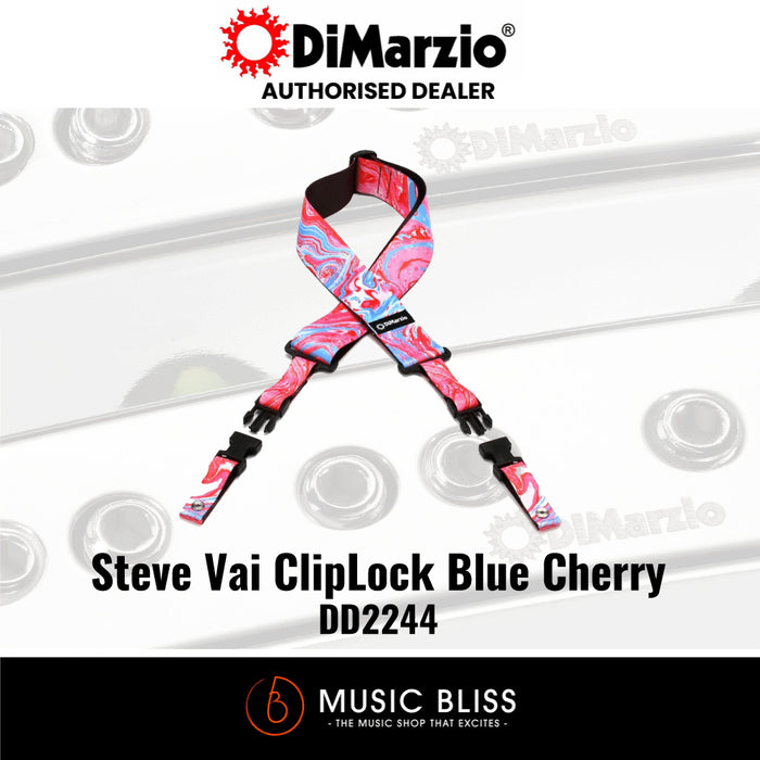 Steve Vai helped pioneer DiMarzio® ClipLock® Quick Release Guitar Straps, and has used them for over twenty years. Naturally, we were delighted and honored when Steve agreed to collaborate with us to produce the signature Steve Vai ClipLock® Guitar Straps. The Blue Cherry Universe design features an immediately recognizable swirl pattern, inspired by Steve’s signature Ibanez Anniversary Universe 7-string guitar.