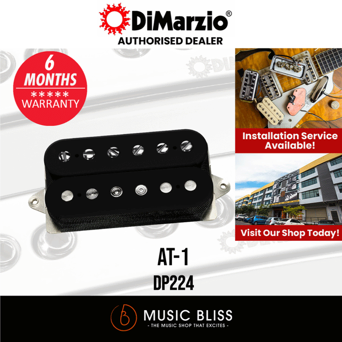 The DiMarzio AT-1 pickup creates an exciting blend of precise definition and red-hot output that's sure to ignite your playing. The signature pickup of Andy Timmons, the AT-1 injects your licks with a balanced fusion of warmth and sweet-sounding clarity. When we first heard the AT-1 here at Music Bliss, our first impression was that of a late-'50s PAF-style humbucker - but much, much louder. The AT-1 is optimized for 25.5" scale, mahogany-bodied guitars, but it sounds great on just about everything, with enough lows to warm up brighter guitars and enough clarity to add articulation to darker ones. The DiMarzio AT-1 pickup is a vintage-voiced humbucker that rocks!