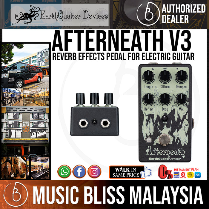 The original Afterneath pedal broke new ground for delay and reverb effects, and with the EarthQuaker Devices Afterneath V3 effects pedal, you have more creative control over these ambient effects than ever before. The evocative reverb algorithm is the same, using swarms of short delays to create unique washes of sonic texture. Now in its third generation, Afterneath V3 adds a voltage/expression input for external control, plus nine different modes that govern how the Drag control interacts with the reverb effect. Plug in an expression pedal, explore the different Drag modes, and discover an entirely new world of ambient effects with the EarthQuaker Devices Afterneath V3 effects pedal.