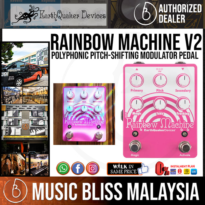 The Rainbow Machine V2 from EarthQuaker Devices empowers guitarists to defy convention and explore otherworldly sounds that are often very un-guitar-like. This second-generation model adds Flexi Switch relay-based switching, which gives you access to either momentary or latching operation for both footswitches. This polyphonic pitch-shifting modulator pedal creates soundscapes that wash your sound in harmonic movement. And the selectable Magic control takes the pitch-shifting effects into totally new sonic territory. By EarthQuaker Devices' own admission, the Rainbow Machine V2 is for "experimenters, adventurists, and noisemakers." The guitarists at Music Bliss know that the journey is sometimes more important than the destination, and the Rainbow Machine V2 is there to propel your musical adventures.