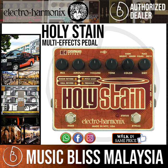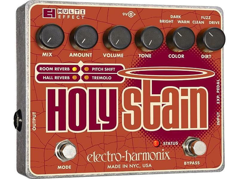 The Electro-Harmonix Holy Stain lets you combine reverb, pitch shifting, and tremolo with analog Drive and Fuzz effects for an interactive stew of gargantuan sonic proportions. Controls for all these effects are very interactive, so you know you'll be getting something new out of the Holy Stain pedal just about every time you use it. As will all E-H products, this pedal is solidly constructed and uses top-notch components. Enter a whole new world of effects possibilities when you step on the Holy Stain pedal and tweak to your heart's content!
