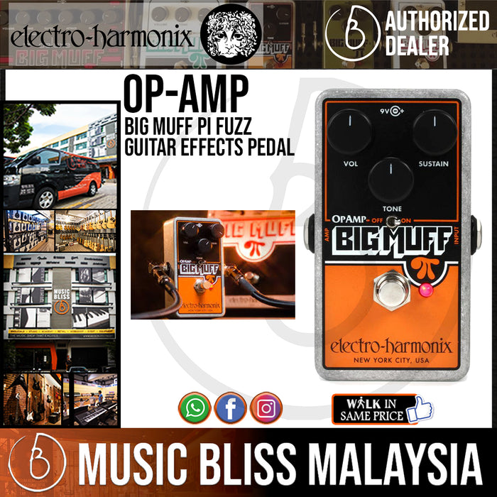 Billy Corgan and James Iha (Smashing Pumpkins) built an empire on Siamese Dream's distinct brand of psychedelia-meets-rock-alternative. A key ingredient to this record's iconic sound, as guitarists today know, is Billy's famed late-'70s V4 IC Big Muff. Now, Corgan and EHX have carefully bottled the tone and response of the original in the Electro-Harmonix Op-Amp Big Muff Pi. This pedal faithfully captures the fuzz-laden and explosive textures of Billy's op-amp equipped '70s Muff. Controls for Volume, Tone, and Sustain (gain) make it quick to dial in the textures your music demands. Meanwhile, a tone bypass toggle temporarily bypasses the pedal's tone circuit for maximum output and aggression. The new compact size and die-cast durability preserve the Siamese Dream tone for a new generation of fuzz fans.