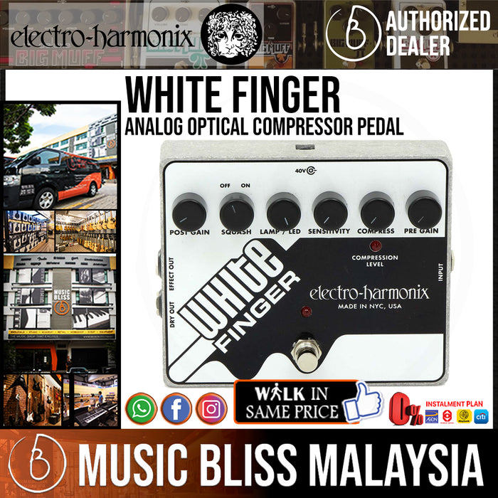 Let There Be White! Just like its cousin the Black Finger, the White Finger yields transparent, long sustain that preserves attack. Two optocouplers (LED and lamp) offer distinctly different readings and uniquely varied compressions. The White Finger features multiple FETs instead of vacuum tubes, making it the affordable alternative.