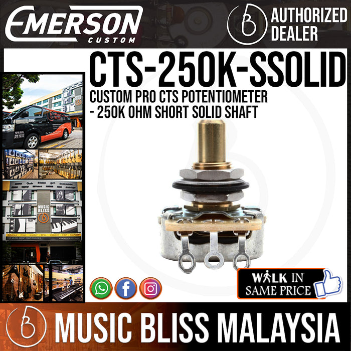 The Emerson Custom Pro CTS 250K Short Solid Shaft Pot offers you precise control over your tone. Emerson refers to their custom-designed taper as, "seamless and very intuitive." When you roll this 250K Short Solid Shaft pot you'll notice a smooth and very accurate response. Emerson Custom hand meters their pots to within an 8% tolerance, ensuring great performance. Guitarists at Music Bliss know that every component in your guitar affects your sound. If you are in need of a potentiometer that allows you to get many different tonal shades from your guitar, check out this Emerson Custom Pro 250K Short Solid Shaft Pot.