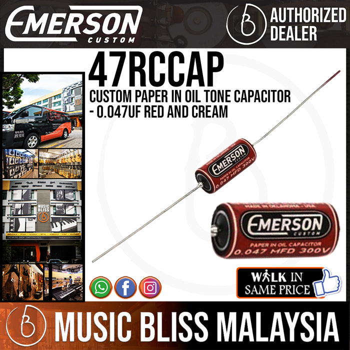 This Emerson Custom 0.047 Tone Capacitor is engineered to give you the same performance as the legendary tone caps in great vintage guitars. These caps offer mil-spec construction, incorporating a hermetically sealed metal tubular casing with sealed glass ends. They are comparable to vintage Sprague Vitamin Q capacitors. Guitarists at Music Bliss know that every component in your guitar affects your sound. If your guitar needs a tonal upgrade, these 0.047uf capacitors are a great way to do it for not a lot of money.