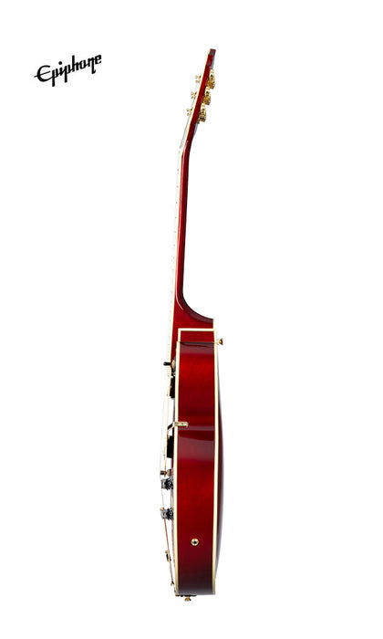 For over 70 years, the classic Epiphone Broadway has been considered the ultimate hollowbody jazz guitar, but it's also excellent for roots rock and other genres. Now, this legacy-rich instrument has returned with beautiful new finishes and comes equipped with Alnico Classic PRO™ humbuckers™, a vintage-style gold Frequensator™ Split Trapeze tailpiece, and premium tuners. Gold hardware and other fine appointments like mother-of-pearl and abalone fretboard and headstock inlays add to the subdued class of this versatile archtop. An Epiphone premium gig bag is included.