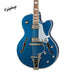 The Epiphone Emperor Swingster™ is a way-cool guitar that excels in a wide range of genres, including jazz, blues, rockabilly, country, and rock. This hollowbody has a 5-ply layered maple body, mahogany neck with a comfortable and fast-playing SlimTaper™ profile, Indian laurel fretboard with block inlays, mother of pearl Epiphone and Tree of Life inlays on the large Clipped Dove Wing headstock, Grover® Rotomatic® tuning machines, and two Epiphone SwingBucker™ pickups, each with a dedicated volume and tone control. Push/pull switches are built into each volume control to provide series/parallel switching for the pickups, and along with the 3-way toggle pickup selector switch, give you a broad selection of tonal options. The LockTone™ Tune-O-Matic™ bridge is mounted on a pinned