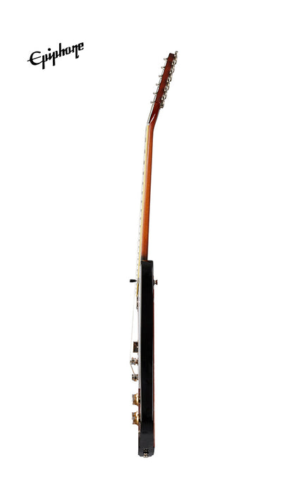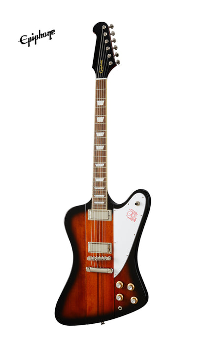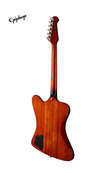 Epiphone's Inspired by Gibson Firebird™ rocks a reverse body and headstock design as originally introduced in 1963 and was Gibson's first neck-through-body design. The traditional 9-ply mahogany/walnut neck-through-body provides rich, warm tonality and incredible sustain. A SlimTaper™ neck with a bound, Indian laurel fingerboard and acrylic trapezoid fingerboard inlays offers fast and effortless playability. The newly refreshed Firebird is outfitted with a set of ProBucker™ FB720 pickups to recapture the scorching output and searing tones of the original voice for which the Firebird is known, and Grover® 18:1 ratio mini tuners. Epiphone Inspired by Gibson Original models feature a rolled neck for a comfortable feel, GraphTech® NuBone® nut, era-appropriate wiring, and CTS® pots. Optional hardshell is available.