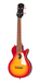 Epiphone’s Les Paul™ Tenor Ukulele (tuned GCEA) has the classic Les Paul body shape with a select spruce top and select mahogany body. The solid mahogany neck has a SlimTaper™ C-profile plus the Les Paul signature in gold on the Sloped Dovewing headstock in the fashion of full-size Les Pauls. The neck has a granadillo fingerboard and a 17” scale length, a 12” fingerboard radius, and 19 medium frets. The bridge is also made from granadillo. The Les Paul Tenor Ukulele is available in Heritage Cherry Sunburst and Vintage Sunburst finishes. The Les Paul Tenor Ukulele can be plugged in to any PA or amp thanks to the under saddle piezo film pickup. The ¼” output jack is rim-mounted. Tuning the Les Paul Tenor Ukulele is easy thanks to Open-Back machine heads with a 14:1 turning ratio.