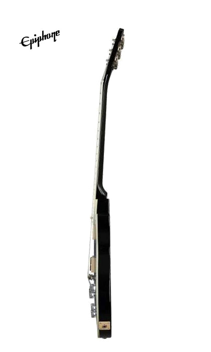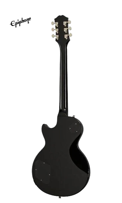 The new Inspired by Gibson™ Epiphone Les Paul™ Modern incorporates many contemporary updates that players have embraced such as a lighter-weight body and innovative SlimTaper™ neck with an asymmetrical profile. The neck/body joint features the new Modern contoured heel for effortless access to the highest frets as well as maximum sustain and stability. Upgrades include an ebony fretboard, Grover® locking Rotomatic® tuners, Graph Tech® nut, clear Top Hat knobs, and ProBucker™ pickups. The control assembly features the treble bleed circuit to keep your highs sparkling when turning your volume down, 3 push-pull pots to switch between the humbucker™ and the single-coil sounds, and phase switching for the most versatile and sonic variety. The new Epiphone Les Paul Modern is here to shape the sound for future generations. Available in Vintage Sparkling Burgundy, Graphite Black, and Faded Pelham Blue finishes.