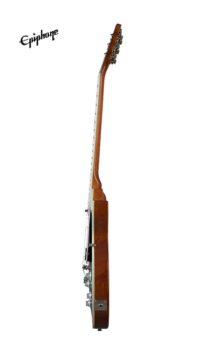 Epiphone’s new Les Paul™ Modern Figured from the Inspired by Gibson™ Collection brings a new look and sound to the world's greatest electric guitar. Featuring a weight relief mahogany body with a beautiful figured top, ProBucker™ pickups with coil-splitting, phase switching, and a treble bleed circuit. Plus, Grover® Locking Rotomatic® tuners with tulip buttons and an 18:1 ratio, GraphTech® nut, and an ebony fingerboard.