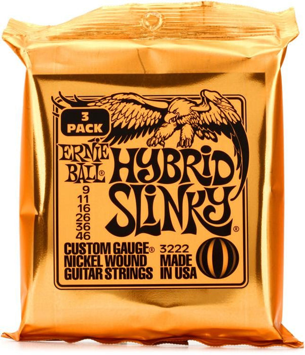 Ernie Ball's Hybrid Slinky Nickel Wound electric guitar strings are made from nickel-plated steel wire wrapped around a tin-plated hex-shaped steel core wire. They offer balanced tone that is a perfect blend of highs, mids, and lows. Guitarists at Music Bliss love Ernie Ball Hybrid Slinky Nickel Wound strings for their tone and durability.