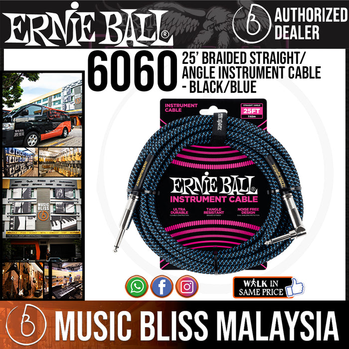Ernie Ball instrument cables feature a high-quality design made with superior components that are built to last. Dual-conductors deliver reliably clear tone with crisp highs, tight mids, and rich harmonics. Multiple shielding materials preserve the signal with low handling noise, and the braided jacket exterior provides a tangle-resistant experience. Cable length 25ft (7.62m).