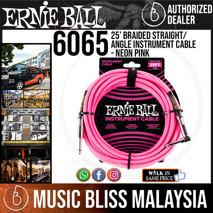 Ernie Ball instrument cables feature a high-quality design made with superior components that are built to last. Dual-conductors deliver reliably clear tone with crisp highs, tight mids, and rich harmonics. Multiple shielding materials preserve the signal with low handling noise, and the braided jacket exterior provides a tangle-resistant experience. Cable length 25ft (7.62m).