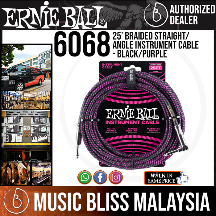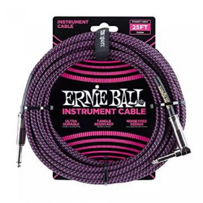 Ernie Ball 6068 25 Feet Braided Straight/Angle Instrument Cable - Black/Purple