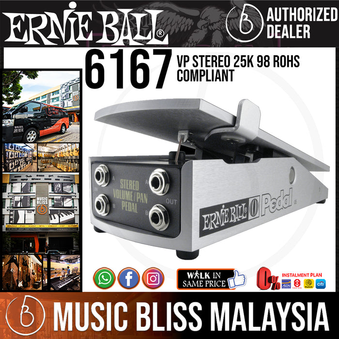 Ernie Ball 250K Mono Volume Pedal With Switch - PO6168 The potentiometer has a 250k ohm resistance suitable for the audio path of passive instruments only. Behind the jack area under the footplate is a taper switch, which provides the user two distinct volume swell rates. Attached to the footplate is an on/off switch connected to the jack labeled "Switch".