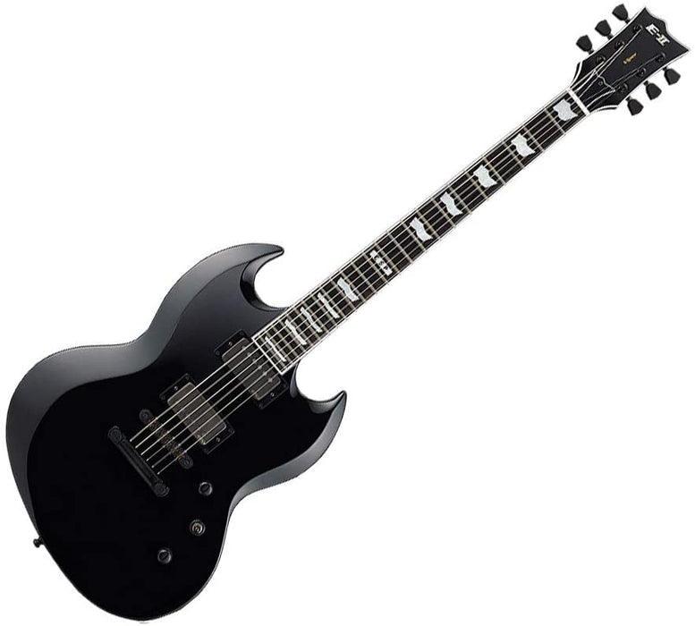 The E-II Viper from ESP represents the premium edition of their popular asymmetrical double-cut Viper electric guitar. Designed and hand-crafted by master luthiers in Japan, the E-II features a set-through mahogany neck on a beautifully resonant mahogany body for a warm sound and plenty of sustain. A pair of EMG 57/66 humbuckers deliver classic hot, humbucking tone and push-pull controls let you coil-split for vintage single-coil sounds when you're in the mood. A smooth ebony fingerboard with extra jumbo frets are instantly playable and responsive — great for fast leads and big power chords. Rounding out the features is a Gotoh Tune-o-matic bridge, a favorite among guitarists here at Music Bliss for its stellar sustain.