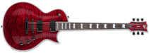 This newly-updated EC-1000 offers a luxurious, upscale look with its quilted maple top, See Thru Black Cherry finish, and special aesthetic touches like multi-ply body and headstock binding, with sleek black hardware complementing the overall design. You also get set-thru construction at 24.75” scale with a smooth heel joint, pairing a mahogany body and three-piece mahogany neck. This EC-1000 also offers the modern amenities for today’s music performance styles, including a TonePros locking TOM bridge and tailpiece, LTD locking tuners, a Macassar ebony fingerboard with ESP flag inlays, and 24 extra-jumbo stainless steel frets. Its sound is powered by a set of direct-mount Fishman Fluence Modern Humbucker active pickups (ceramic in the bridge and alnico in the neck), with push-pull control to select voicings and black nickel covers to match this guitar’s outstanding aesthetics. Each pickup offers two voices. With the ceramic bridge pickup, Voice 1 is the ultimate high-output ceramic humbucker bridge pickup tone… crisp, searing crunch, tight bass with no mud, and a growl. Voice 2 delivers modern passive attack performance that has superbly organic distortion characteristics with outstanding dynamics and response. The alnico neck pickup’s Voice 1 is Fishman’s modern active high-output tone, offering the ideal active alnico sound: full, round, and boosted, but with unprecedented articulation and dynamics. Voice 2 gives you the crisp, clean and fluid neck humbucker tone you’ve always wanted.