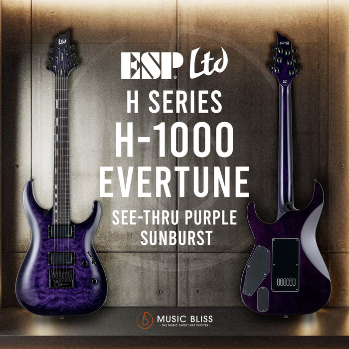 The LTD H-1000 is designed for aspiring professional musicians who are looking to step up their rig. Playability is number one, thanks to the H-1000’s dual cutaways and thin "U"-shaped neck that give you easy access to all 24 frets. Two handpicked premium Fishman Fluence pickups provide multiple voicing options that you can dial in on the fly via a convenient push-pull tone knob. Music Bliss guitarists found a lot to love about the H-1000's prime feature: a cutting-edge EverTune bridge, which locks in your tuning and keeps it there even during bad weather or rowdy stage antics. In other words, say goodbye to inconvenient tuning breaks and hello to more time mastering your instrument.