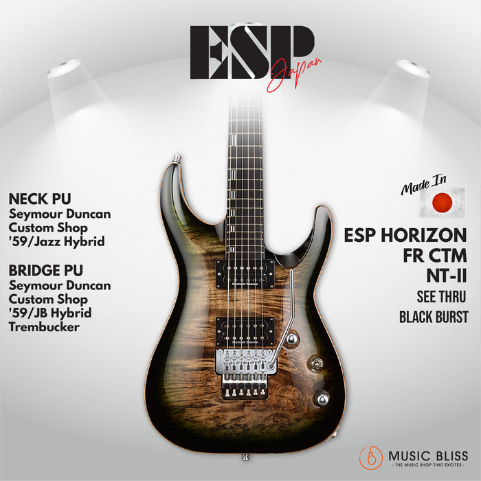 The combination of the maple set neck and mahogany body back creates a solid sustain with a three-dimensional feel. This guitar has a style befitting the highest in the series, with beautiful and rare wood on the top of the body. HORIZON-CTM FR/BM uses carefully selected Burled Maple for the body top material.