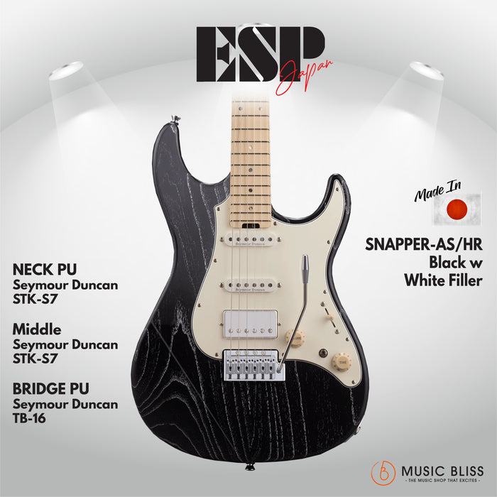 What is ESP's standard? One answer is this SNAPPER. The look has evolved from traditional style to modern style, resulting in a timeless and sophisticated design. A hard rock maple neck is set on a high quality alder body. The bridge uses Flicker III, which features smooth arming, and the pickups are Seymour Duncan's tap type STK-S7 and humbucker TB-16.