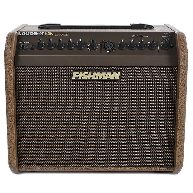 Here's that portable yet powerful acoustic amp you've been wanting. The Loudbox Mini Charge is a battery-powered amp that is small but puts out big, natural amplified acoustic tone. At 60 watts, the Loudbox Mini Charge features two channels with Fishman’s popular preamp and tone control designs. There is also a digital reverb and chorus for the instrument channel and reverb for the microphone channel. The Loudbox Mini Charge also features an Aux input and a balanced XLR DI output — great for playing along to or capturing your live performances. And now with Bluetooth wireless connectivity, you can bring in backing tracks or other accompaniment to your performances. Acoustic performers here at Music Bliss love the Fishman Loudbox Mini Charge.