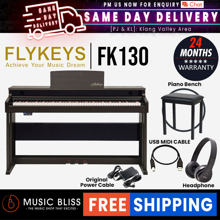 FLYKEYS FK130 88-Key Digital Piano Home Electric Piano Keyboard - Rosewood (FK-130 / FK 130) (FK130-RW-P1)
