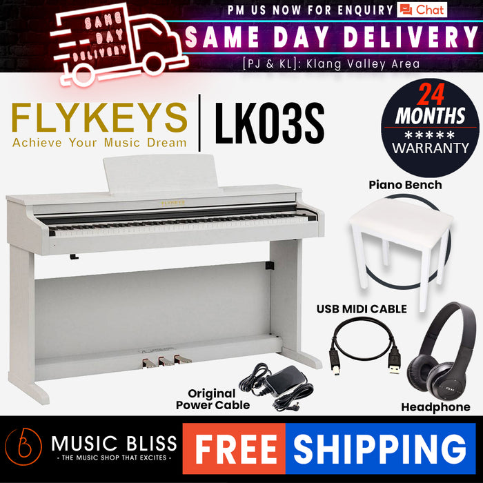 FLYKEYS LK03S 88-Key Digital Piano Home Electric Piano Keyboard - White (LK-03S / LK 03S) (LK03S-WH-P1)