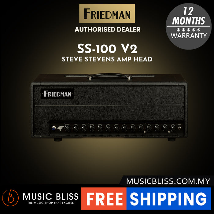 Steve Stevens roared onto the music scene in the 1980s, quickly making a name for himself as he blazed across records with Billy Idol, Ric Ocasek, Michael Jackson, and more, in addition to netting a Grammy for his work on the Top Gun theme. While his masterful chops speak for themselves, his tone is what makes his work continue to shine. The Friedman SS-100v2 is the newly refined distillation of his diverse, decades-long career of sounding out. As you’d expect with any signature amp, no effort was spared by Dave Friedman and his team to realize Stevens’ triumphant tone. Handcrafted in the USA, the SS-100v2 is a 3-channel, road-ready menace that’s brimming with tone. Signature Stevens sound is delivered via EL-34 power tubes and 12AX7 preamp tubes to capture a powerful, dynamic range of sonics. A straightforward design and a 2-button footswitch enable you to easily call up and dial in your sounds, with a suite of EQ, per-channel, and impedance controls to refine everything from crystal cleans to high-octane gain. Guitar gurus at Music Bliss are impressed with the versatility of the SS-100v2 — it produces flexible, articulate sounds that are undeniably Steve Stevens, all the way.