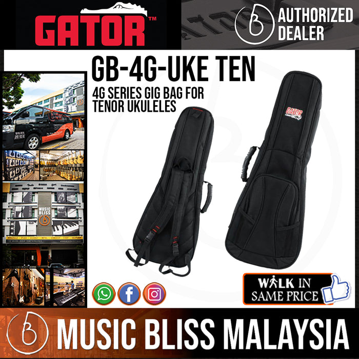 From your car, to your back, and to the stage, Gator GB-4G-UKE TEN tenor ukulele gig bag is the smart choice when you need convenient, protective transportation for your ukuleles. Thick padding keeps your instrument protected from damaging impacts while Gator makes sure the most vulnerable parts of your ukulele get extra attention adding internal headstock and bridge reinforcements to the GB-4G-UKE TEN. With an exterior pocket for your cables, spare strings, and tuner, and Gator's Pick-Clip for an emergency pick, you'll always be ready to rock with the Gator GB-4G-UKE TEN tenor ukulele gig bag.