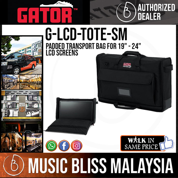 Gator transports your LCD screen safely to your next gig. Perfect for sound professionals and presenters, the Gator G-LCD-TOTE protects an LCD screen 19-24" in size (diagonally) with heavy-duty nylon and 25mm foam padding. A soft tricot interior prevents scratches in transit. And dual carry handles plus a reinforced shoulder strap make this tote a breeze to load in with your other materials. The external pocket gets Music Bliss seal of approval. Not only is it useful for keeping HDMI and power cables at easy reach, but its clear vinyl window keeps your business card or ID on display at all times.
