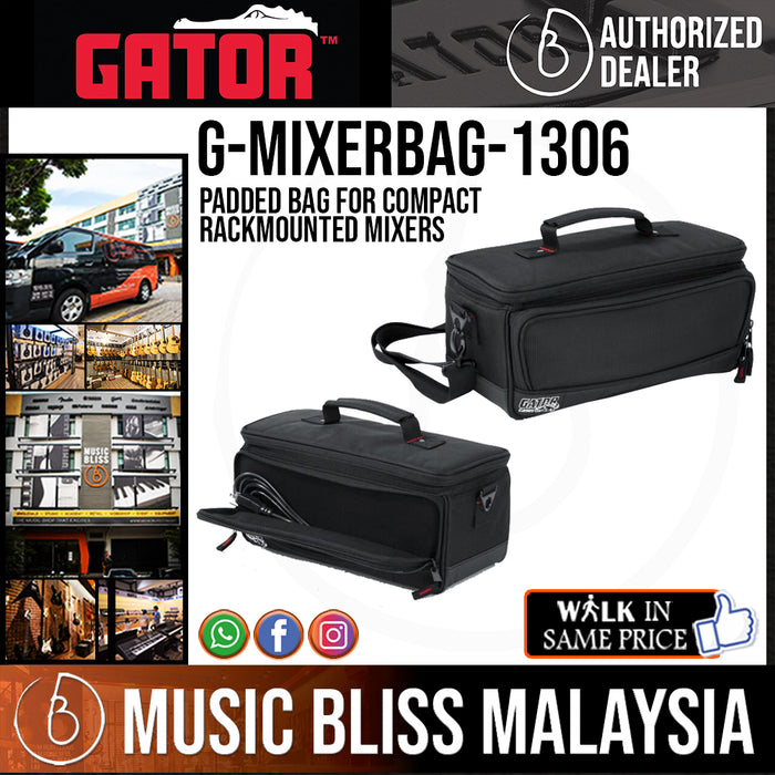 The Gator Cases G-Mixer Bag-1306 is designed to protect your compact rackmounted mixer at all times. This protective bag is perfect for Behringer X Air mixers, and it even works well with the Behringer SD8 & SD16 Stage Boxes and similar-sized equipment. The 10mm layered padding protects against bumps and scrapes. An external pocket gives you space for storing cables and accessories. The Gator Cases G-Mixer Bag-1306 is the solution we can recommend for taking your compact mixer on the move.