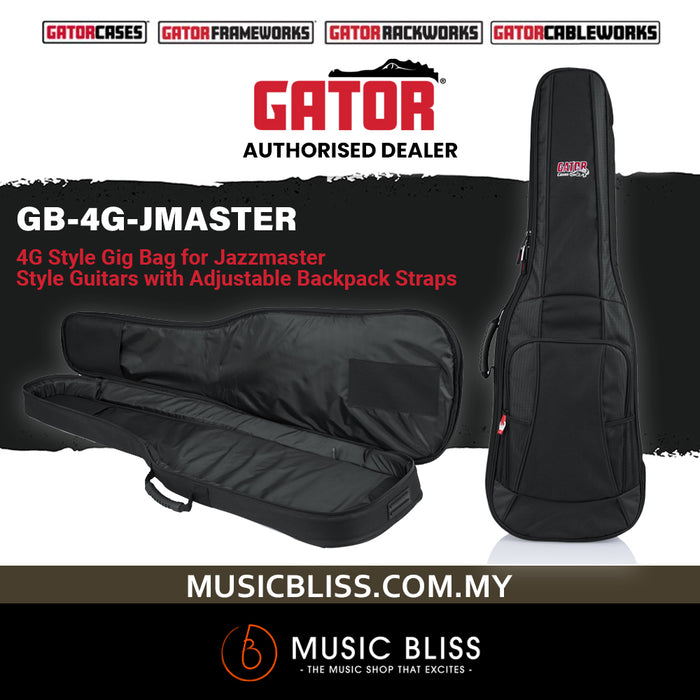 The Fender Jazzmaster is a unique electric guitar with an iconic cut and design. The designers at Gator decided to create a gig bag for this special instrument: introducing the Gator 4G Jazzmaster Gig Bag. With GFLEX 20mm interior padding and a 600-denier nylon exterior, this is a gig bag you can trust to protect your Jazzmaster as you travel and load in and out. The Gator 4G also comes with a reinforced carry handle, padded backpack straps, and an internal headstock and bridge reinforcement for supporting your Jazzmaster at its most vulnerable spots. An exterior mesh pocket on the front allows you to store gig accessories for easy access. Jazzmaster enthusiasts here at Music Bliss appreciate the durability and ergonomic design of the Gator 4G Jazzmaster, and we know you will too.
