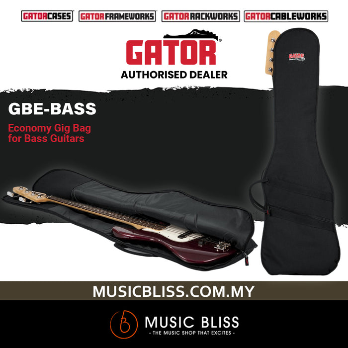 The Gator GBE-BASS economy electric bass guitar gig bag is made to fit your instrument, lifestyle, and budget. The worst thing you can do is leave your bass exposed to damaging elements such as humidity and dust or leaving it available to curious hands. With a rugged exterior and padding, this gig bag protects your instrument from the hazards of backseat transport and environmental damage when you aren't playing - using the GBE-BASS means you'll be getting to the gig with your guitar in one piece. So whether you're storing your bass at home or heading out to your weekly gig, you need the affordability, convenience, and uncompromising protection of the Gator GBE-BASS electric bass guitar economy gig bag.