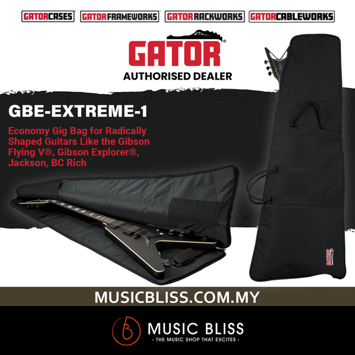 The Gator GBE-EXTREME-1 economy offset-body electric guitar gig bag is made to fit your instrument, lifestyle, and budget. The worst thing you can do is leave your guitar exposed to damaging elements such as humidity and dust or leaving it available to curious hands. With a rugged exterior and padding, this gig bag protects your instrument from the hazards of backseat transport and environmental damage when you aren't playing - using the GBE-EXTREME-1 means you'll be getting to the gig with your guitar in one piece. So whether you're storing your guitar at home or heading out to your weekly gig, you need the affordability, convenience, and uncompromising protection of the Gator GBE-EXTREME-1 offset-body electric guitar economy gig bag.