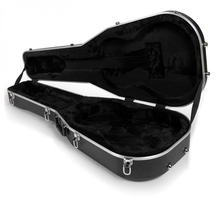 Gator has designed this deluxe, molded hard case specifically for parlor acoustic guitars. Featuring a hard outer shell molded from impact-resistant ABS plastic, this case provides the kind of protection from impacts during transport or storage that gives you real peace of mind. The interior of this Gator case also features EPS foam and a plush lining that keeps your prized guitar free from nicks and scratches. An interior storage compartment is perfect for gig extras like capos, strings, and tuners. When you're making the sometimes long walk to the show, you will appreciate the reinforced, comfortable handles on this quality Gator case. And the chrome-plated, lockable latches keep your case securely closed during transport or storage. If you have a parlor acoustic, this is the case you need. Acoustic owners here at Music Bliss trust Gator cases for their quality craftsmanship and durability.